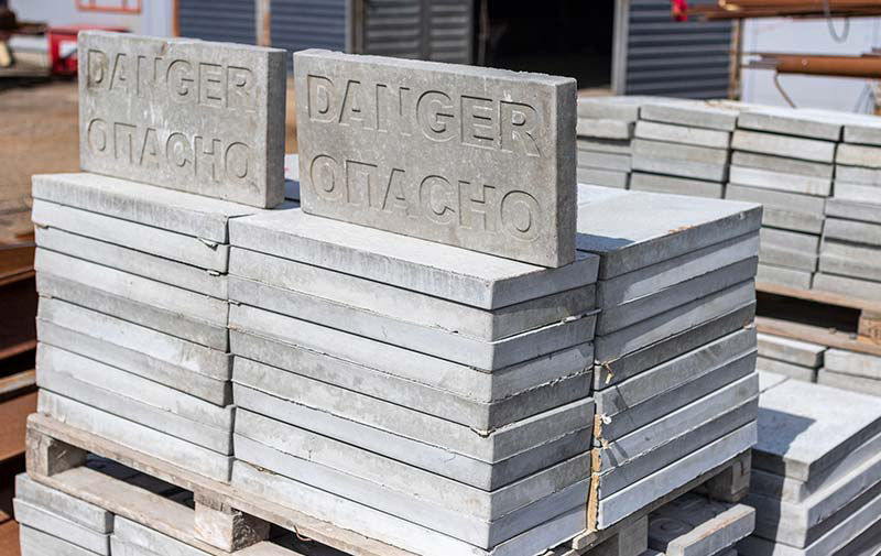 У нас имеется участок который оснащен вибростолами, бетоносмесителями и растворомешалками, что позволяет самостоятельно производить плитку бетонная для покрытия кабельных каналов с надписью " ОПАСНО” “DANGER" для нужд ТШО и других организаций, а так-же столбики бетонные. Наличие своего участка позволило наладить производство малых бетонных изделий по эскизам заказчиков.